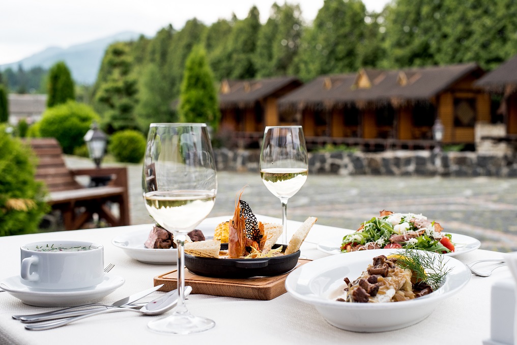 В основном меню ресторана около 85 позиций, включая детское меню. Считаем, что это много и стараемся сократить меню. Но из-за расположения ресторана у трассы Киев-Чоп к нам заезжает много путешественников с детьми, которые хотят не только рыбу, но и простую, понятую еду. Самыми любимыми у гостей, конечно же, являются блюда из рыбы — это и форель в сметане, и уха, стерлядь горячего копчения, форель холодного копчения, маринованная форель (как сельдь), и наша новая звезда — карпаччо из радужной форели. Помимо основных блюд из рыбы мы готовим много закусок — это и рыбные паштеты, и фиш-энд-чипс, и тефтели из форели, пельмени с форелью. Мы засаливаем рыбу и коптим разными способами. В сезонном меню можно встретить венгерскую уху «Халасле». В меню также много локальных блюд, таких как: банош, бограч, потрохи в сметане, сало пяти видов засола, белые грибы, вареники с вишнями. Еще мы ежедневно с любовью выпекаем домашний хлеб.