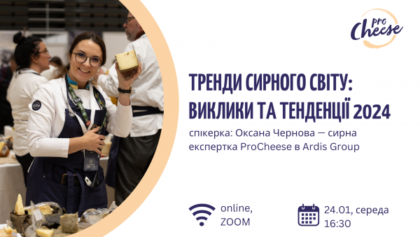 24 січня 2023 року о 16:30 відбудеться вебінар «Тренди сирного світу: виклики та тенденції 2024», — повідомляють в ProCheese від Ardis Group.