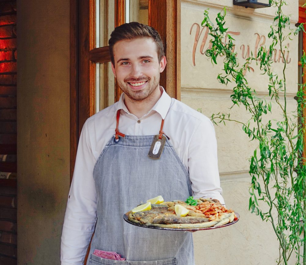 Здесь предложат заказать блюда “в стол”, то есть на всех. В заведении рекомендуют пробовать большую тарелку черноморской рыбы. Кефаль, бычок, ставридка, барабулька, луфарь и сарган обжарят до хруста в кукурузной муке по одесскому рецепту и дополнят стаканом рачков — маленьких черноморских креветок. К такому черноморскому разнообразию кроме гарнира в виде запеченной картошки и закусок добавить нечего.