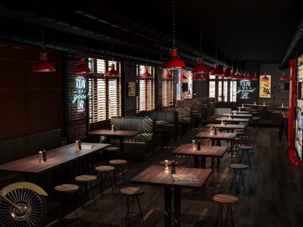 Меню складається із різноманітних закусок, бургерів, піци та салатів, страв з гриля, перших та основних страв, а також страв пан-азійської кухні. Барне меню складається з пива, вина, міцних алкогольних напоїв та коктейлів. Є безалкогольні напої, кава та чай.