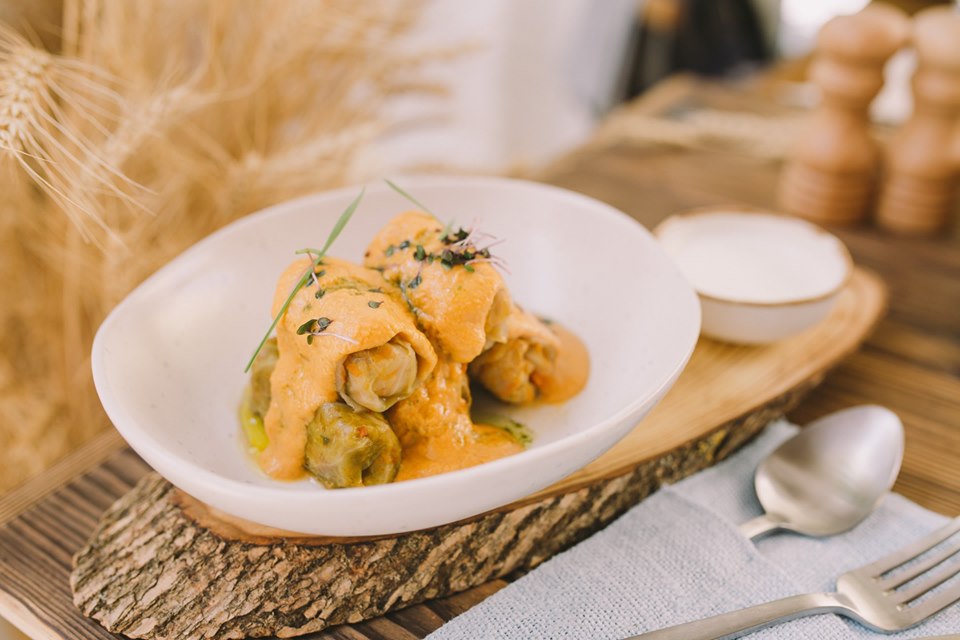 У меню — різноманітні закуски на кшталт форшмаку, запечених перців з овечою бринзою і часниковим маслом, асорті з сала; супи, серед яких класичний та зелений борщ, грибна юшка та інше, салати як-от олів’є з індичкою або лососем, салат з куркою, овочами, фермерським сиром і сухарями.