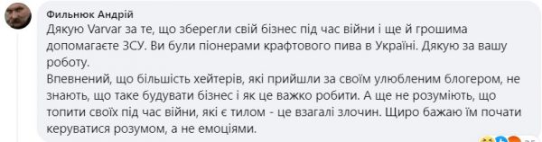 Водночас є й ті, хто підтримав броварню та не розуміють обурення перших.