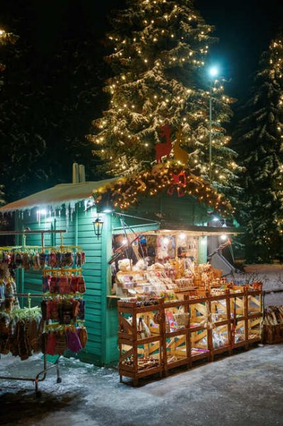 Прямо біля центрального входу ВДНГ розмістили будиночки з різними святковими цікавинками. Тут можна купити: шоколад ручної роботи, натуральні цукерки, варення із соснових шишок, іграшки й сувеніри, зимові аксесуари та все інше, що може стати чудовим подарунком до зимових свят.