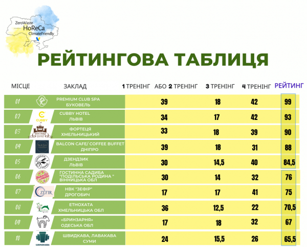 А пам’ятаєте ми шукали 40 щасливчиків-закладів гостинності, які зможуть пройти безкоштовне онлайн навчання з впровадження безвідходних і кліматично дружніх рішень? Ми знайшли своїх героїв, які навіть в сучасних важких умовах прагнуть до нових знань, впроваджують екоініціативи, оберігаючи кожен міліметр рідної української землі.