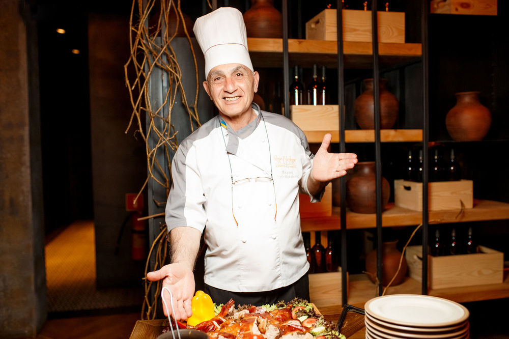 Банкетные блюда от гуру грузинской кухни Анзори Квирикашвили. Шеф-повар ресторана «Хмели-Сунели» Анзори Квирикашвили знает секрет лучшего праздника! Идеальное банкетное блюдо, нежный запеченный поросенок по фирменному рецепту не оставит равнодушным ни одного гостя, и придаст приятной изюминки вашей важному событию. Шеф лично подает блюдо к праздничному столу! 🙂