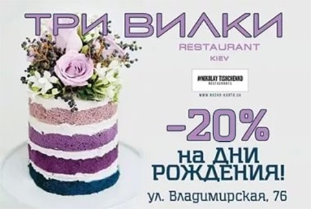 А чтобы праздник стал еще и вкусным — ресторан “Три Вилки” дарит Вам скидку 20% на все меню!