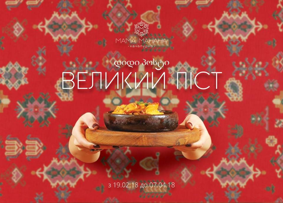 До Великого Посту ресторан «Мама Манана» створив спеціальне меню. З 19 лютого по 7 квітня на вас чекають найсмачніші пісні блюда грузинської кухні!