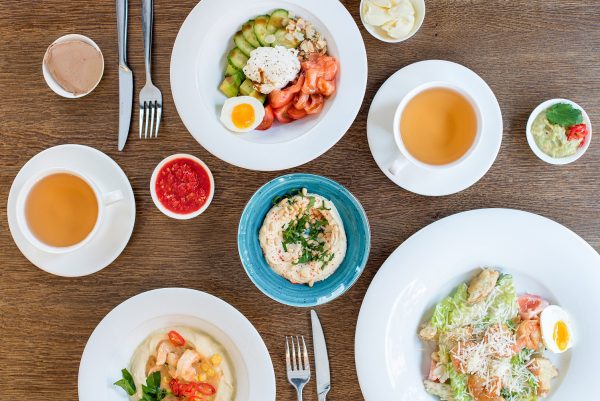 А за 599 гривен можно заказать «фирменный завтрак на двоих» — с игристым, кофе, мясными или рыбными закусками, несколькими видами хрустящей чиабатты с гуакамоле и хумусом, пашоты – с курицей и с лососем, а кроме того сладкие утренние блюда.