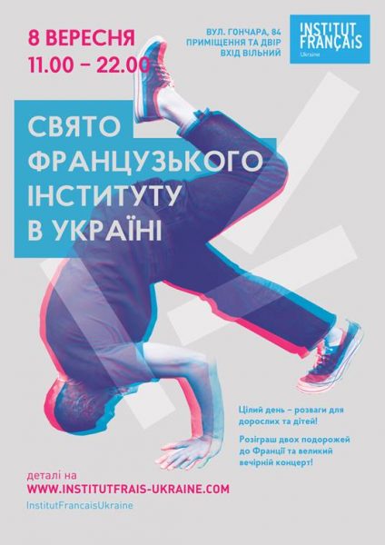 Французький інститут в Україні любить свою роботу, в також всіх друзів, цінує партнерів і щиро запрошує всіх-всіх з 11 ранку до 22 вечора завітати у приміщення та дворик на вулиці Олеся Гончара, 84.