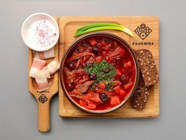 Дещо з меню: борщ український з пампушками – 159 грн.