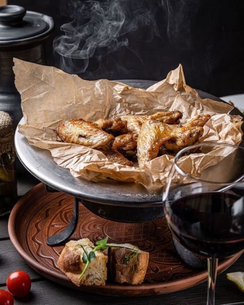 Деталі: Ребра в закладі радять замовляти метрами, зокрема, в вишневому, кавказському, азійському, смродиновому, медово-карамельному соусі. Тут подають і люля-кебаб, курячі крильця BBQ, філе індички на грилі, домашні перепела. Шашлики роблять з баранини, курячого стегна, свинячого ошийка, яловичої вирізки. Хто ж не хоче їсти м’ясо, може замовити суші або салат з морепродуктами та чилійськими мідіями, цезар зі слабосолоним лососем, салат з тигровими креветками та авокадо. Салатів загалом тут понад 10 видів. Є тут і паста, і свиняча рулька в пивному маринаді з тушкованою капустою для компаній.