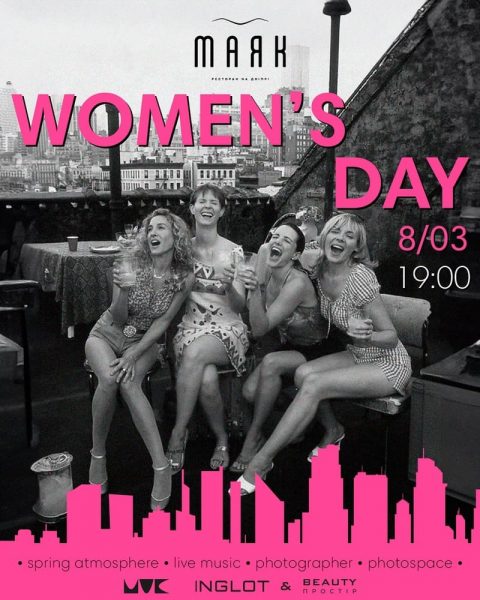 Деталі: Ресторан «Маяк» розташований на березі Дніпра, з його панорамних вікон відкривається дивовижний краєвид на річку. Ресторан на Дніпрі «Маяк» підготував для вас незабутній вечір 8 березня — починаючи з 19:00, вас запрошують вас у весняну атмосферу під супроводом живого вокалу, щоб ви могли насолоджуватися кожним чарівним моментом. Професійний фотограф закарбує у пам’яті ваші найкращі миті, а фотозона дозволить створити неповторні кадри для ваших соцмереж. Бронювання за телефоном +380504145540.