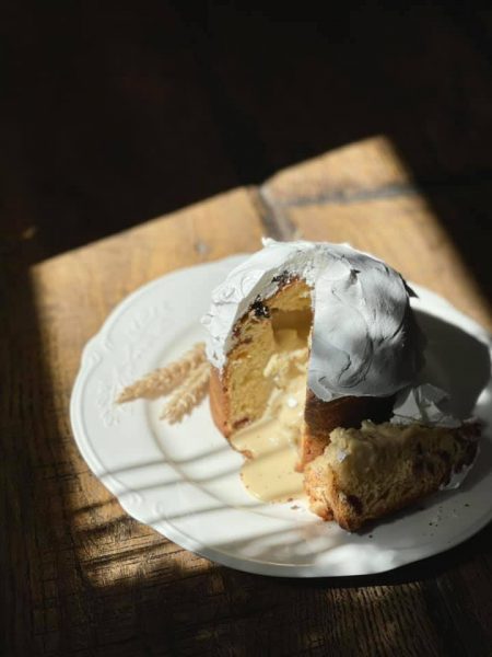 Що пропонують: пасочка-віночок з оформленням з безе – 450 грн, пасочка-віночок з карамельним оформленням та сухофруктами – 450 грн, панетоне з мигдалевою скоринкою – 380 грн, панетоне «оформи самостійно» – 520 грн.