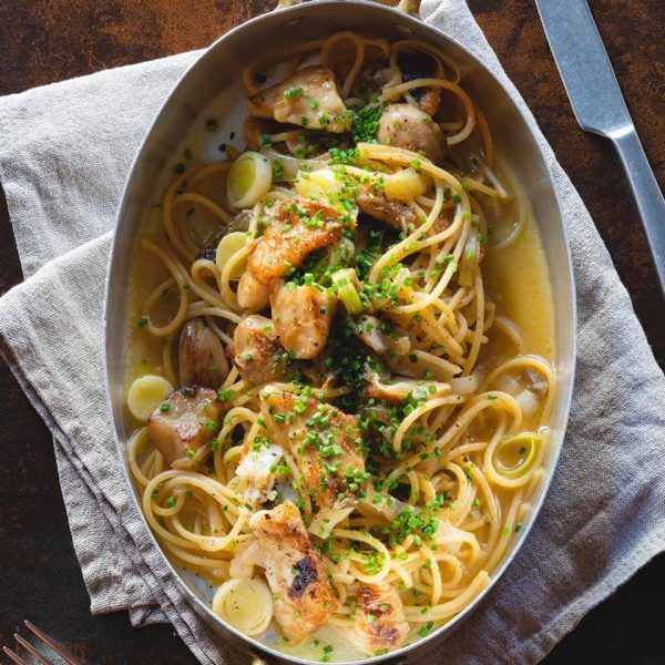 Страви: піца «Пера Б’янка» – 178 грн, равіолі з кроликом – 158 грн, брускета з авокадо, страчателою та пікантним соусом – 118 грн, котоллета по-міланськи з курячого філе з грибним соусом – 156 грн, салат з обсмаженою куркою, маринованим цукіні та кунжутно-горіховим соусом – 138 грн.