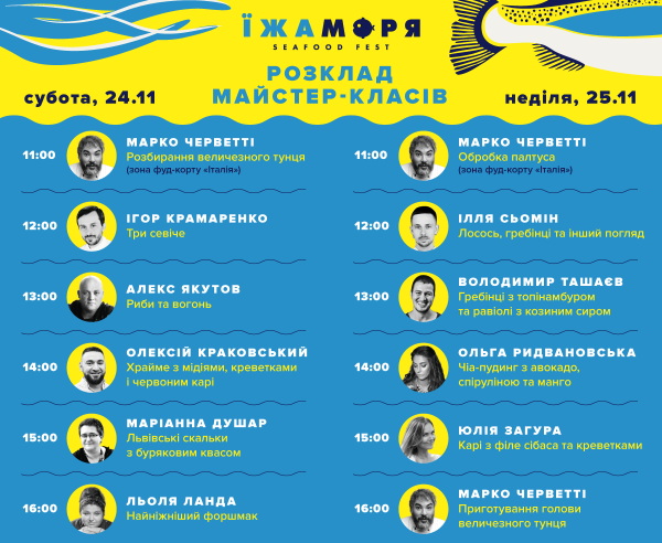 Починається у суботу вже з 11:00 – з розбору величезного тунця Марко Черветти.