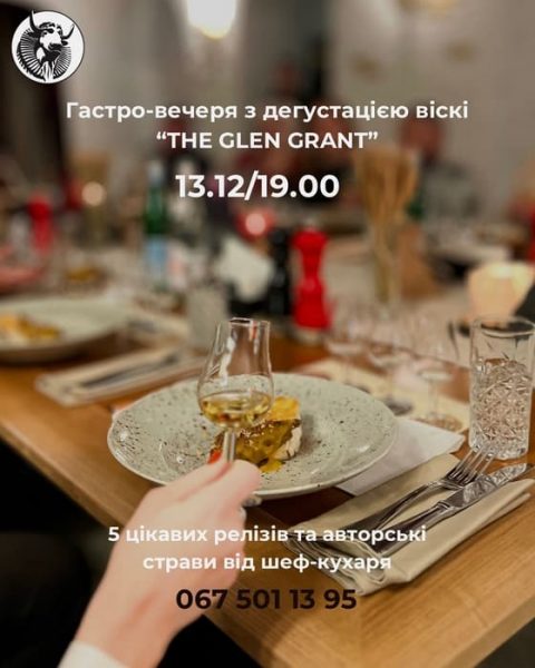 Гастро-вечеря з дегустацією віскі «THE GLEN GRANT» у стейк-хаусі Sam’s