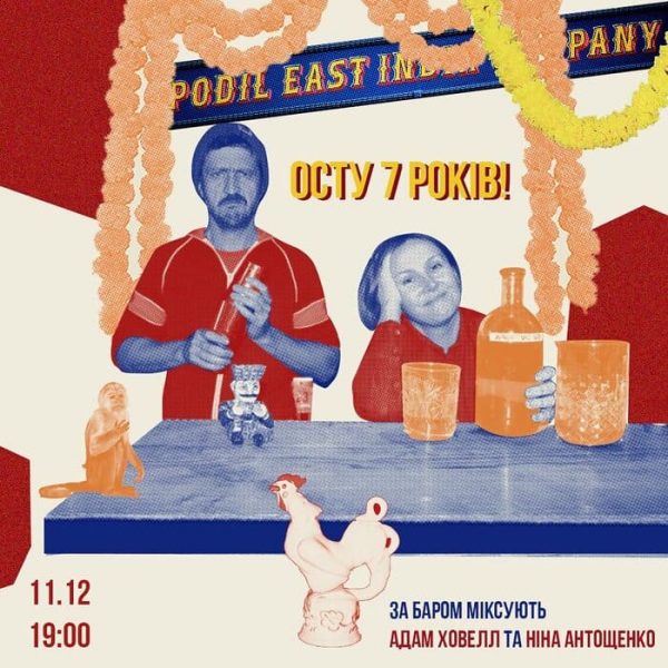 Ресторан-бар Podil East India Company 11 грудня запрошує відсвяткувати сьомий день народження закладу разом з ними. За баром будуть міксувати Адам Ховелл та Ніна Антощенко.