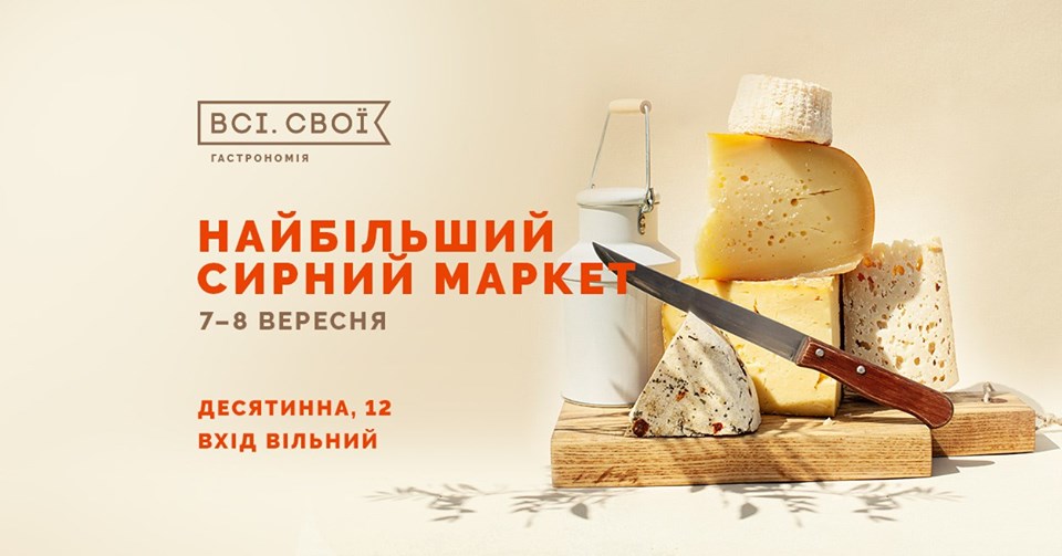 Про подію: На початку вересня у Києві відбудеться «Найбільший сирний маркет» від Всі. Свої та Всі. Свої Гастрономія. «Ми оголошуємо перший у цьому сезоні НайСИРніший маркет! У нас зберуться найкращі виробники українського сиру — як відомі, так і ті, хто став для нас справжнім сирним відкриттям. Кожен з гостей нашого маркету зможе зустріти київську осінь з бокалом вина та шматочком чудового сиру» — повідомляється на сторінці події у фейсбуці. Також на гостей чекає різноманіття соусів та варення до сиру і крафтовий алкоголь. Вхід на подію — вільний!