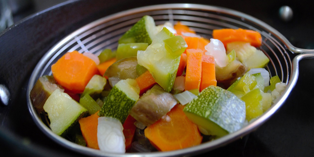 Бланширование – это мгновенная обработка продукта паром или кипятком. Ингредиент погружается в кипящую воду на короткий промежуток времени, а затем поддается шоковому охлаждению. Благодаря этому брокколи, к примеру, сохраняет яркий, сочный цвет и максимум полезных свойств, а с томата намного проще снять кожуру.