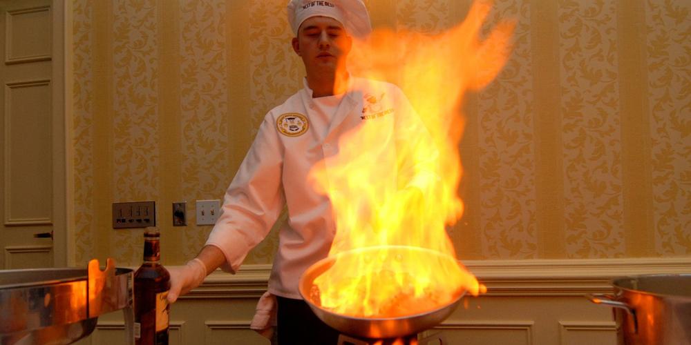 Фламбирование не просто очередной метод приготовления пищи, это целое шоу. На раскаленную сковороду резко вливается алкоголь, и образует пламя. Отсюда и название «flamber» (с франц. «пылать»). Идеальными напитками для фламбирования считаются ром, коньяк и ликеры, благодаря которым блюда наполняются богатым, многогранным ароматом. При термической обработке спирт практически полностью выпаривается, оставляя лишь слегка уловимые нотки вкуса.