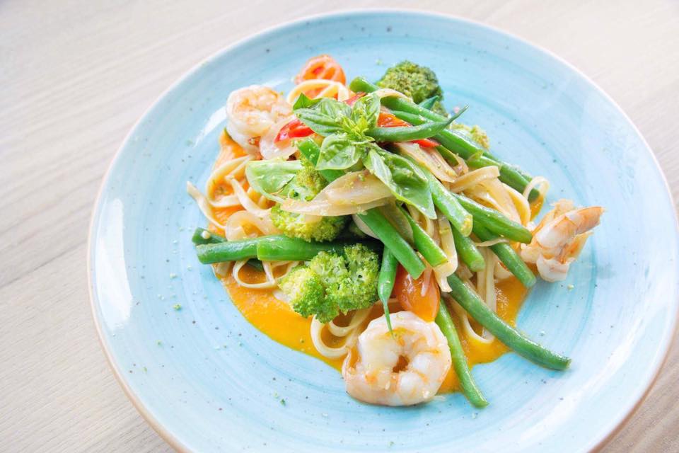 В ресторане Zafferano наш выбор пал на домашнюю пасту, которую здесь готовят без добавления сливок: паста с цуккини, брокколи, спаржей и томатами – 189 грн., паппарделле с белыми грибами – 179 грн., тальятелле с морепродуктами – 360 грн., паста с лобстером, креветками и шафраном – 525 грн.