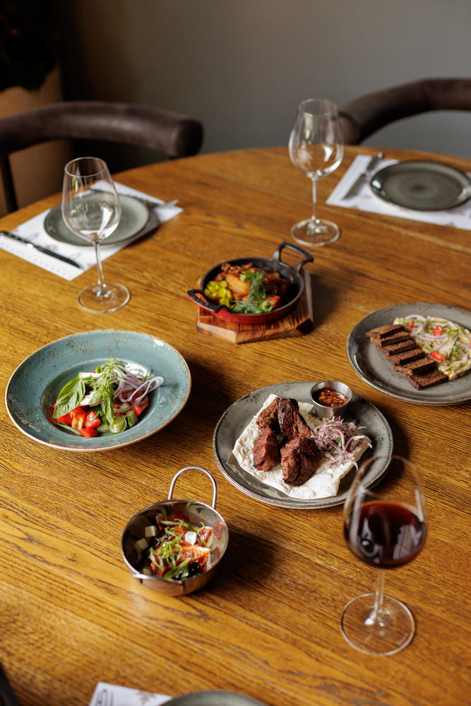 Деталі: Ресторан пропонує багатий вибір страв грузинської кухні, включаючи хачапурі, хінкалі, шашлик та інші традиційні страви. Меню також містить різноманітні десерти та напої.