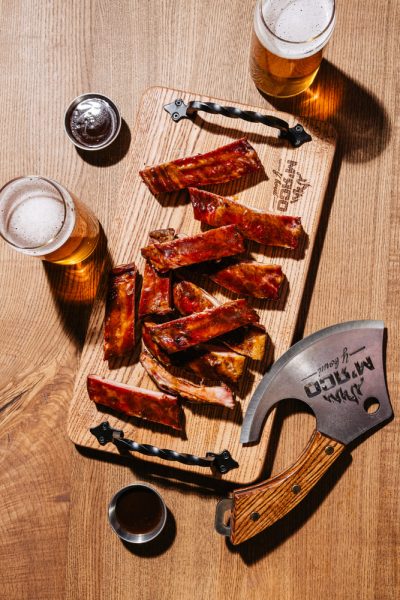 Дещо з меню: томлені реберця — (300 г) 229 грн / (600 г) 399 грн, рвана телятина зі смокера — 249 грн, птиця у вогні — 165 грн, комбо «Геть Усе, та ще трошки» — 849 грн.