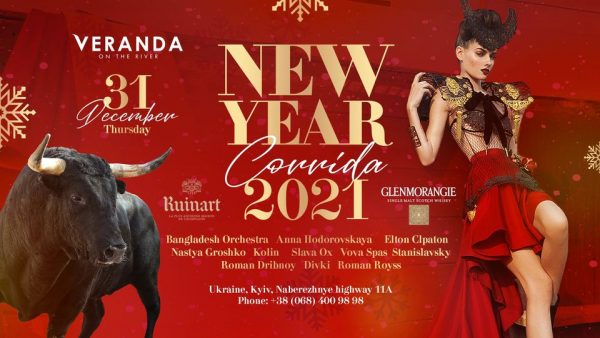 «Веранда на Днепре» — преміумресторан на воді, з якого відкривається захоплюючий вид на Дніпро. 31 грудня гостей запрошують відсвяткувати Новий Рік з грандіозною програмою і частуванням. Шеф-кухар ресторану Сергій Башинський підготував спеціальне новорічне меню: страви з органічного м’яса і риби, делікатесні морепродукти, авторські закуски і салати. На першій палубі корабля-ресторану чекає віртуозна гра на роялі, тематична фотозна, фокуси від ілюзіоніста, а також розіграш цінних призів. З 22:00 виступ вокалістки Anna Hodorovskaya і Elton Kipaton. Після святкового феєрверку музичну програму продовжать Anastasiya Groshko і Dj Diresh. На другій палубі подарує найкращі кавер-хіти Anastasiya Groshko. Після новорічного феєрверку яскраве шоу подарують гостям Bangladesh Orchestra, show-ballet Divki Project, Slava Ox, Vova Spas і Dj Stanislavsky. Ведучі вечора – Роман Дрібний і Дмитро Антонов. Початок на першій палубі о 20:00, на другій палубі о 21:00. Бронювання столів за телефоном +380684009898.