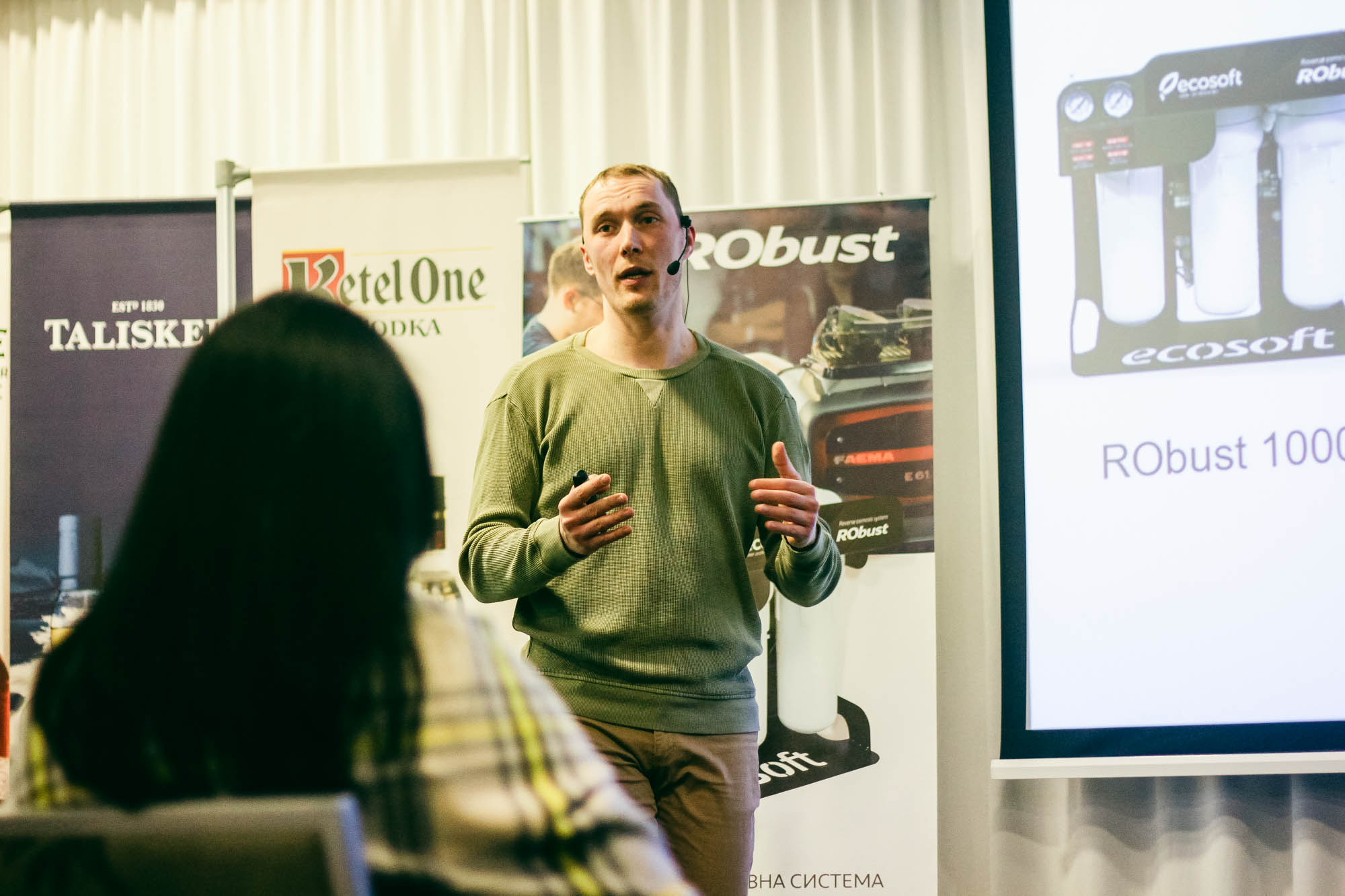 Артем Капенко — руководитель проектного офиса Ecosoft – международного бренда систем по очистке воды. Во время доклада Артем рассказал о важности наличия в ресторане качественной чистой воды, а также почему вода может помочь добиться успеха. Артем детальнее ознакомил гостей форума с процессами очистки воды, сделав акцент на том, насколько важна ее фильтрация в большом городе.