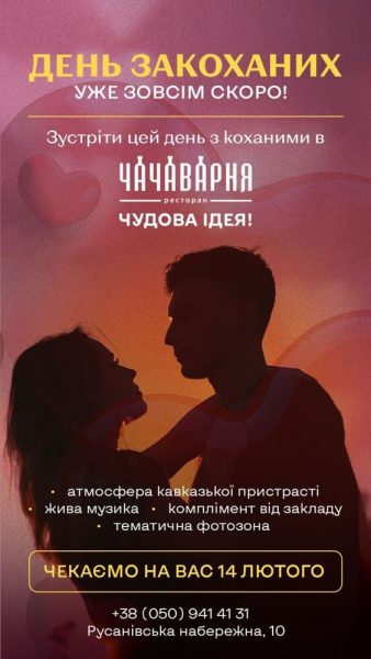 У цій невимушеній атмосфері фотограф зробить вам світлини на пам’ять поруч з тематичною фотозоною, а “Welcome Drink” допоможе бути розкутими та насолодитися цим вечором сповна. Завітайте в «Чачаварня» та проведіть День закоханих особливо. Резерв столу за телефоном +380509414131.