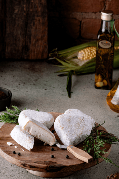 Це коровʼячий сир з білою пліснявою та «родзинкою», в переносному сенсі. Метою сироварів було створити сир, який би точно зміг перенести споживача у гори — місце сили та натхнення виробників. Характерний для білої плісняви грибний аромат та додавання сухого ялівцю  — чи не найкраща ідея, щоб передати аромати лісу та природності цього сиру.