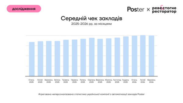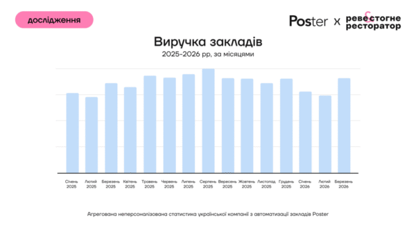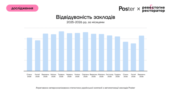 Аналіз української компанії з автоматизації закладів Poster базується на агрегованих неперсоналізованих даних 12 600 закладів громадського харчування різних форматів, що працювали у 2025–2026 роках.