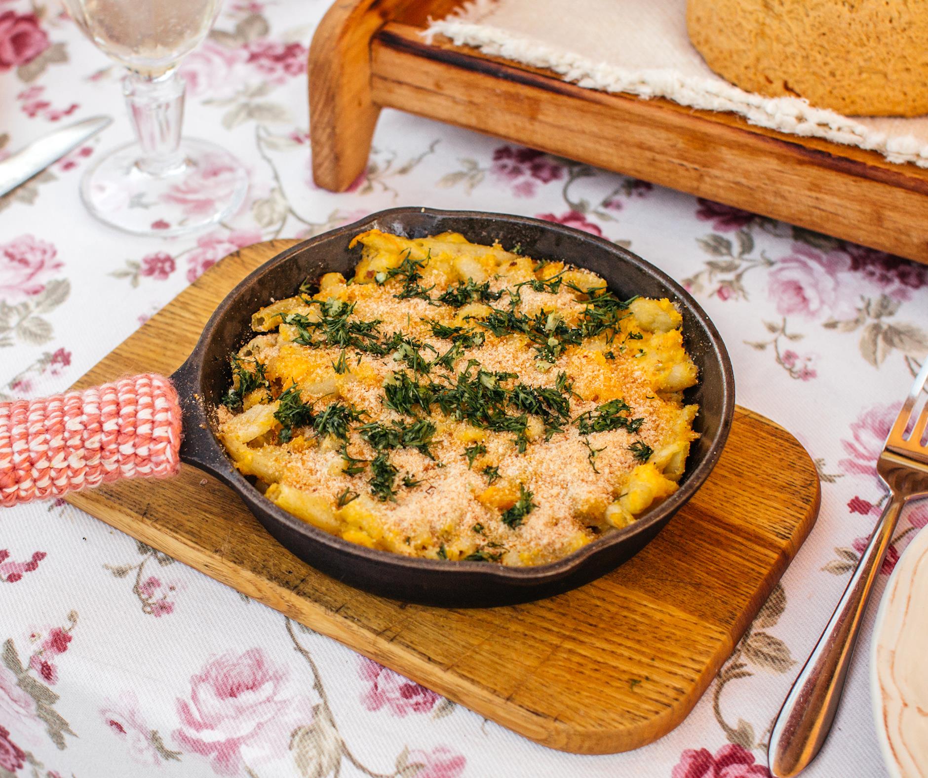 В ресторані подають традиційні галицькі страви – флячки, капусняк, задимлений бограч, ковбаси власного виробництва, пироги, макітри з варениками, пательні з баношами, бігусами, пляцки.Також тут великий вибір страв з риби: пструг нагостро, пструг копчений, пструг з вугілля, кором смажений, карасі в сметані тощо.